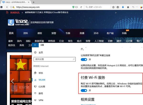 进入“开始”菜单,选择设置>网络和Internet>WLAN。在“WLAN”选项下,选择打开“Wi-Fi付费服务”。