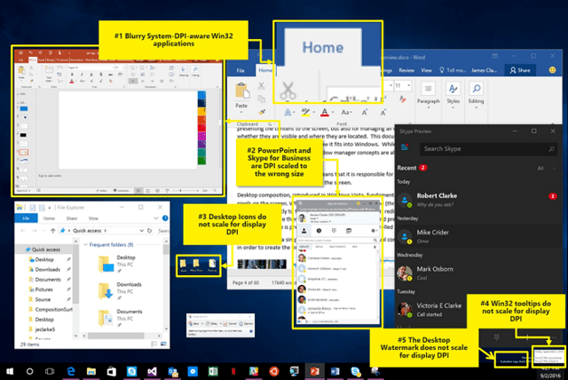 其实早在此前的Windows 10周年更新推送之后,Windows 10团队的工作重心已经开始明显向DPI(Dots Per Incd)倾斜,这倒不是因为微软有多长远的视野,而是因为在4K等高分辨率下,Windows 10的表现确实难说让人满意,因此在去年的10月份,微软在官方博客曾介绍过混合DPI模式(Mixed-Mode DPI Scaling)以提高视觉表现。而就在即将推送的Windows 10 RedStone 2 Creator Update当中,依然是Peter Felts将为我们演示Windows 10团队最近对高DPI效果的提升。