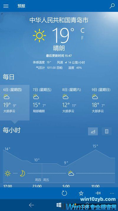 通过和微博以及论坛网友的交流,我们发现这并不是个例,如果你在Win10的系统设置当中将区域设置成中国大陆,那么那段时间你就会遇到这种问题,而如果你将区域设置为其他地区(例如中国香港特别行政区),那么未来几天以及未来几个小时的天气数据则会正常显示: