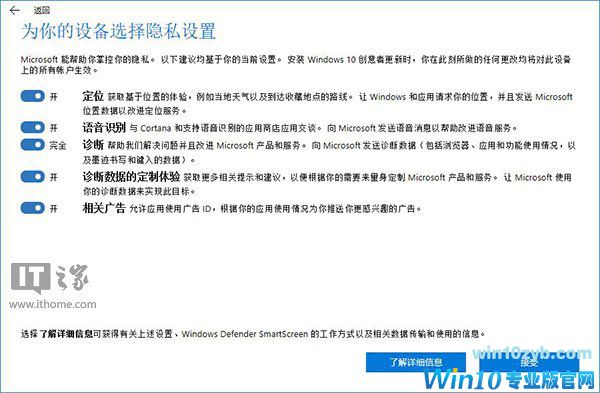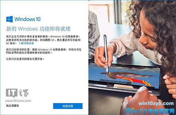 4月12日消息 今天凌晨,微软向全球用户正式推送Win10创意者更新,不同版本的用户将会陆续受到来自于微软的推送通知。而作为更新创意者更新之前的最后一步,微软将会为用户推送创意者更新的隐私设置。
