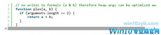 而另一项改进涉及到没有形参的函数堆参数。创作者更新为 JIT(即时编辑)带来了进一步优化,帮助创建没有写入形参的堆参数。此外这里不再需要为代码分配堆参数对象,这项优化将会让 95% 的网站受益。