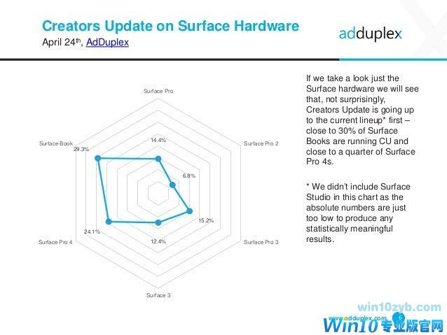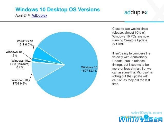 广告网络AdDuplex发布的,针对Windows设备的最新跟踪统计信息则表明,Windows 10 创意者更新在推出了仅仅13天之后,就已经在大约4000万台的Windows 10 PC上进行了安装升级。