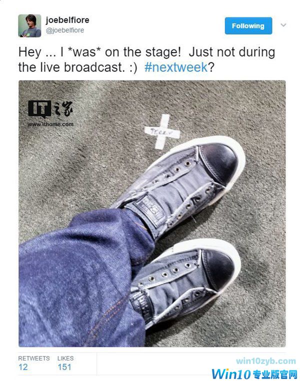 5月8日消息 微软在5月2日发布了Win10S和Surface Laptop笔记本产品,此前IT之家报道,微软Joe Belfiore(乔北峰)现身微软Win10 EDU教育发布会现场发自拍,但直到发布会后我们也没有看到乔北峰,不过后来乔北峰表示自己的确是“在台上”,只是没有出现在视频直播里。