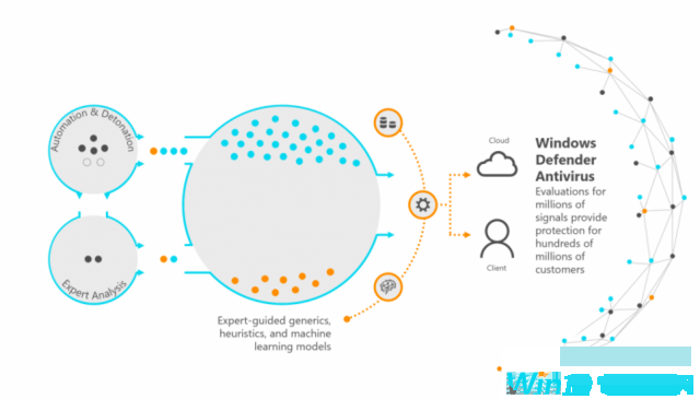 今天,微软放出了一份名为《Evolution of malware prevention(恶意软件攻防战变革)》的白皮书中,其中着重突出了他们的Windows Defender优势,比如微软能够通过更多的分析、机器学习等方法,帮助人类安全专家自动、快速、高效、精准的检测出恶意软件,并从而干掉它们。