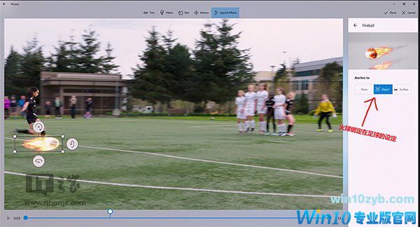 下图中的火焰特效则是绑定在了足球上,简单的一个按钮,就能让普通人也做出来在过去只有专业人士才能做出来的特效。