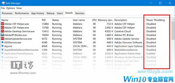 省电设定更新:从16193开始,任务管理器的“Background Moderated”会改名为“Power Throttling”。更多有关Power Throttling的信息请点击这里查看。