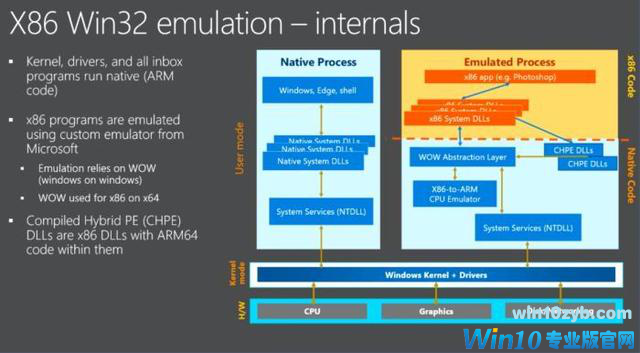 微软证实,Windows 10 ARM版不仅支持运行为X86处理器设计的应用,而且还允许用户从互联网上下载并安装、运行任何的Win32程序。