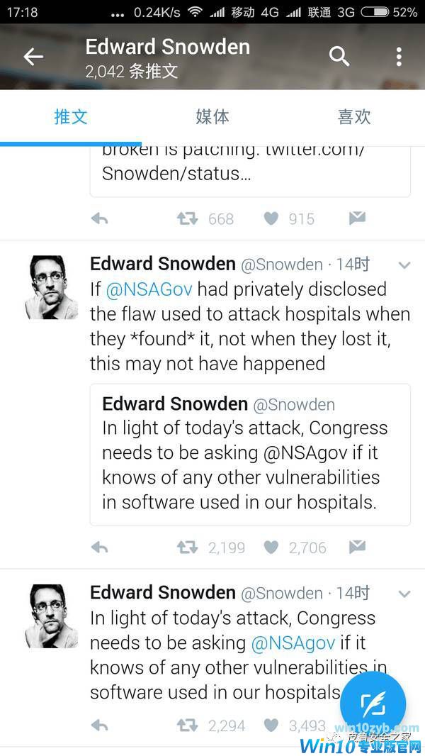 虽然NSA装聋作哑,但是斯诺登却不安于沉默,在推特发声建议国会质询NSA: