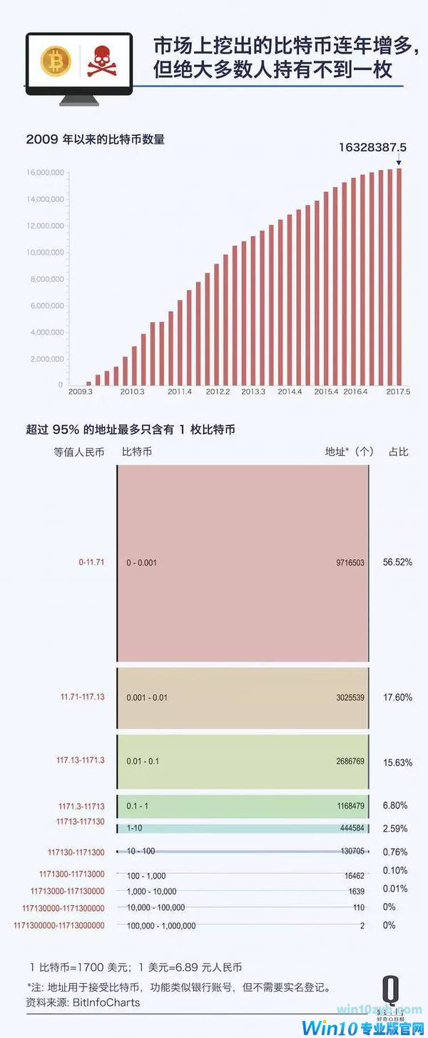 根据 BitInfoChart 统计,现在全球大概已经挖出 1633 万枚比特币、存在 171 万个地址。