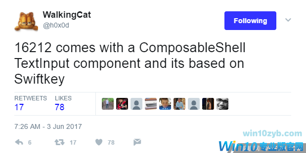 此外,Build 16212 还新增了一个”ComposableShell TextInput”的组件,其基于滑动输入法 SwiftKey。所以我们猜想微软可能希望在 Windows 10 上带来滑动输入体验。