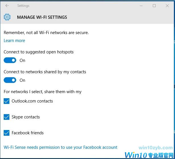 Windows10中的WiFi感知功能允许用户自动连接周围开放WiFi,节省数据流量,或者在不用告知朋友、联系人WiFi密码的情况下,安全分享私有无线网络。WiFi感知功能最初是在WP8.1系统上首次出现。