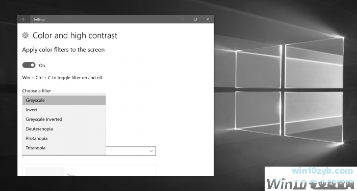 新的滤色镜应用于系统级别,包括六种不同的设置,使色盲用户更容易区分红色和绿色等颜色。此外微软表示,它的过滤器可以帮助具有光敏感性的人创建和使用内容,因为它们调整所有显示的图像,无论它们是否是操作系统的一部分。可用的过滤器包括灰度,反转,灰度倒置,Deuteranopia,Protanopia和Tritanopia,并被放置在设置>易于访问>颜色和高对比度选项当中,设置它们不需要系统重新启动,并且立即应用所有更改。
