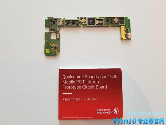从图片上可以看到,针对PC而设计的骁龙835电路板非常小,仅有50.4cm?,相比传统的移动PC电路板缩小了近一半。这对PC OEM厂商来说非常重要,因为采用高通骁龙平台的电路板可以为机身内部节省大量的空间,这不仅意味着可以为电池预留更大的空间,而且对于缩小产品尺寸和重量也非常有帮助。