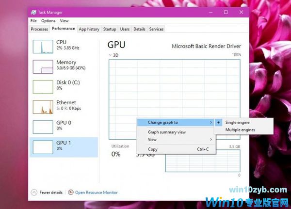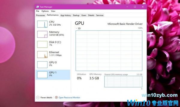 根据用户的反馈信息,在任务管理器中提供了关于GPU方面的相关信息。在“性能”(Performance)标签页上用户能够查看每个GPU组件的相关信息(例如3D和视频解码/编码),以及显存的使用情况。