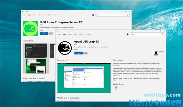 6月26日消息 在今年5月份的Build 2017大会上,微软宣布将会把Ubuntu、SUSE Linux和Fedora等Linux系统带到Win10应用商店,针对Windows10 PC下载。今天SUSE已经上架了SUSE Linux Enterprise Server 12和openSUSE Leap 42到应用商店中,不过目前仅供最新版本的Win10秋季创意者更新预览版用户下载。这项新特性得益于Win10中的Linux子系统。