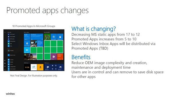 而随着今年夏季即将推送的Win10一周年更新系统带来,微软开始屏幕建议应用会由5个增加到10个,而开始菜单屏幕默认Pin到首页的应用数目会由17个减少到12个。