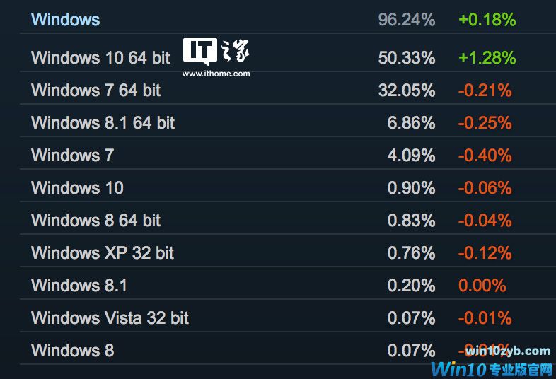 7月3日消息 Steam上2017年6月份的硬件统计报告已经出炉,结果显示在Steam游戏平台,Windows系统依然占据超过96%的份额,无人能敌。在Windows系统中,Win10系统获得增长,已经达到51.23%,远远超过了此前的王者Win7系统。