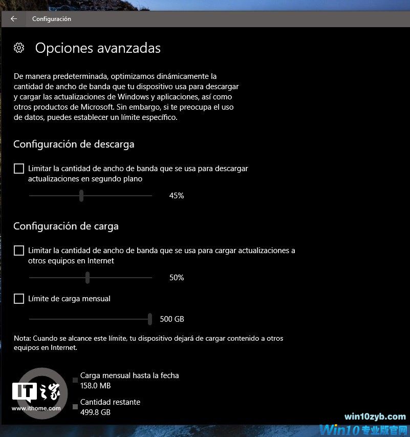 用户升级到Win10 Build 16237版本后,可以很容易找到这项设置功能,大家可以到设置——更新和安全——Windows更新——高级选项——传输优化——高级选项,左侧便有几项可供设置的选项,可以限制带宽百分比和数据量等。