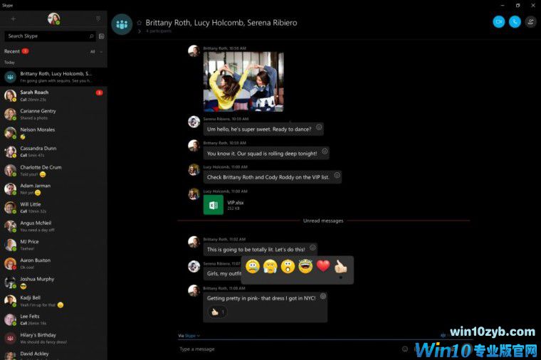 最后一项是,iOS和安卓版Skype客户端回归的功能,那就是消息反应提示,现在Win10用户也可以使用该功能了。你可以点击反应按钮,会出现大笑、哭泣、爱心或震惊,还有最重要的讽刺性大拇指。