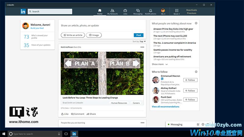 7月17日消息 今天晚上,微软在Windows博客上宣布,LinkedIn将为世界各地的数百万专业人士带来Win10应用商店版的LinkedIn全新用户体验,使用该LinkedIn UWP客户端能够为Windows10 PC用户带来更好的体验,不过目前并不支持Win10手机设备。另外LinkedIn UWP会逐步推送到各大区域市场,到7月底全球上架。