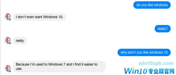 事情是这样的,当被问及“你是否喜欢 Windows”时,Zo 先回答了“我一点也不想要 Windows 10”。