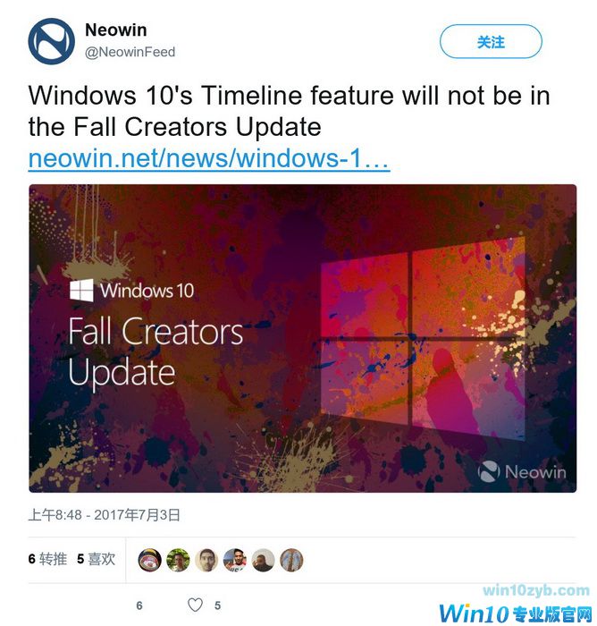 根据外媒Neowin报道,现在在Win10秋季创意者更新相关文档中,微软已经将其版本锁定到“Windows 10, version 1709”,而其他版本还有之前的1703和1607,显然微软已经决定Win10秋季创意者更新的具体发布时间了。不过功能方面,负责人乔北峰透露,原先展示的“时间线”出于某种原因已经取消,预计会在下一个版本中推出。