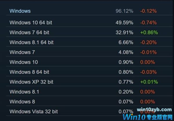在上月Windows 10的份额来到51.23%的新高后,7月出现跌幅,目前不足一半(64bit)。