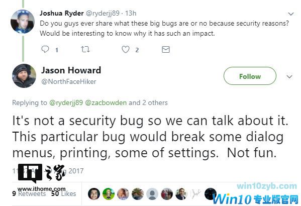 微软的 Jason Howard也确认了内测版的阻断性Bug带来了“重大影响”,表示该Bug会“破坏”Win10系统的某些设置、对话框,甚至是打印机功能。