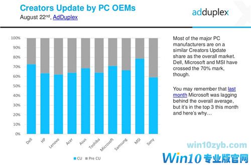 在原始设备制造商提供Windows 10设备的情况下,创作者的更新采用的是生长在这里,MSI,戴尔,和华硕领先的时候,电脑已经更新到最新的Windows 10版本数量。